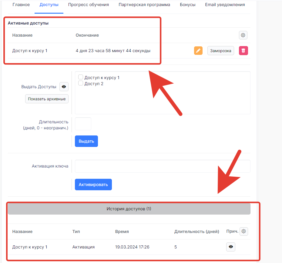 И видим, что доступ появился в разделе - Активные доступы, а также, в истории доступов у аккаунта в школе.