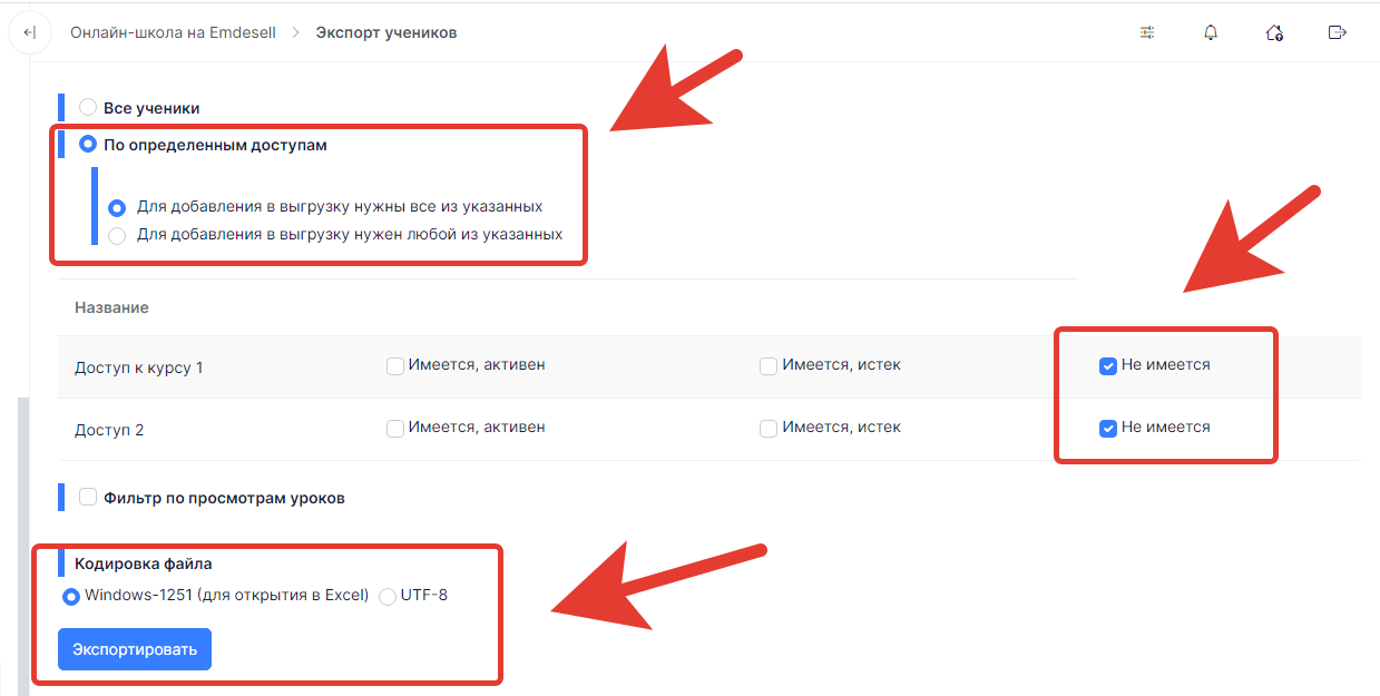 - Отмечаем во всех пунктах в таблице с названиями курсов - Не имеется;