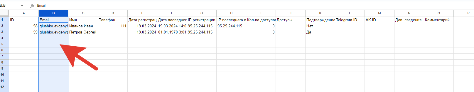 Из данной таблицы копируем столбец с email адресами аккаунтов.