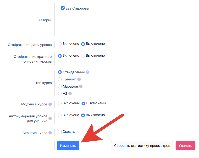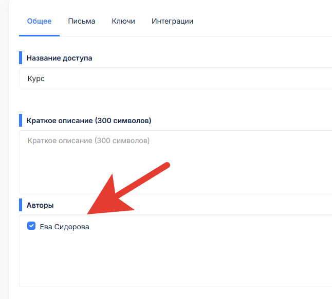 - Далее в опции авторы отметить галочкой необходимого автора, которому нужно будет проверять вопросы по этому курсу школы