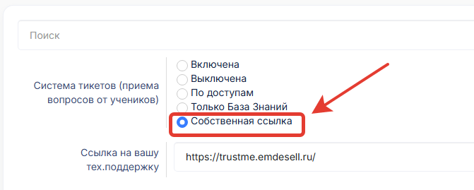 При выборе этой опции появляется поле для вставки ссылки на какой-либо другой сервис технической поддержки для сайта школы.
