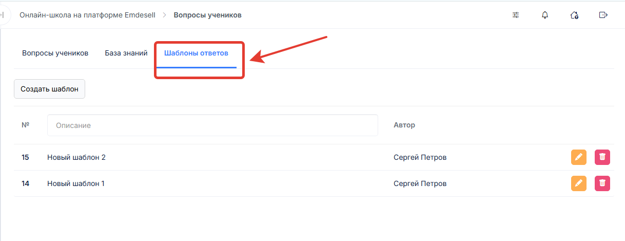 Этот подраздел дает возможность создать шаблоны для ответов на вопросы учеников.