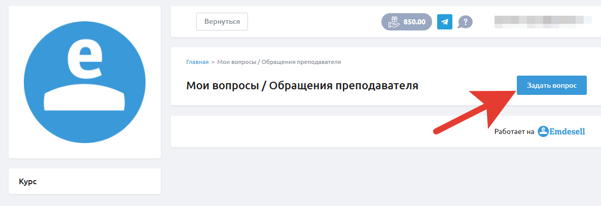 Отметим курс в опции доступы, позволяющие задать вопрос