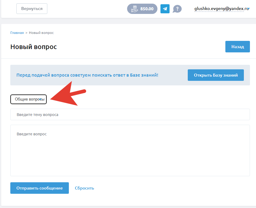 Таким образом, при входе в раздел отправки вопросов от ученика в школе, будет размещено уведомление о наличии раздела базы знаний в школе.
