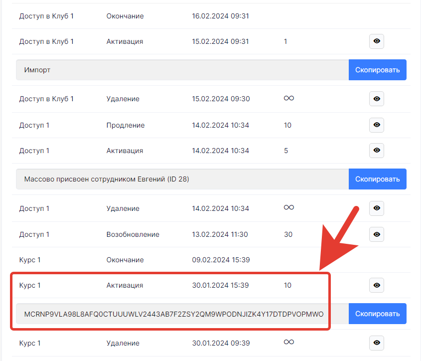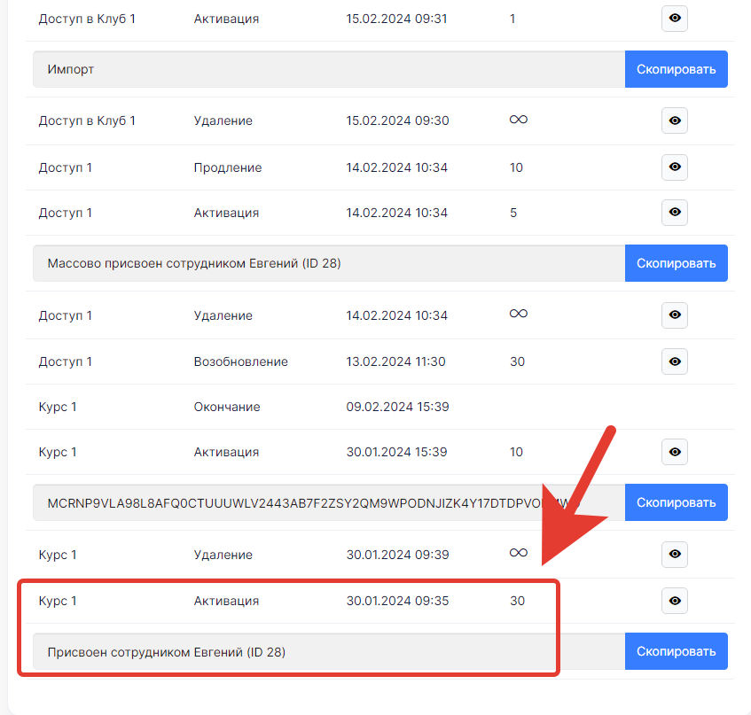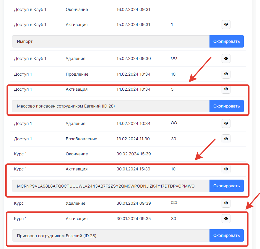 Посмотрим и остальную информацию (как был активирован доступ) по всем типам - Актвивация, у этого ученика школы.