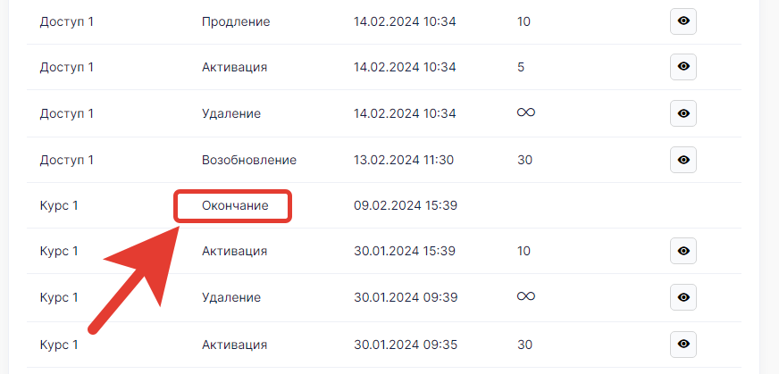 В таком случае тип доступа будет - Окончание. Это означает, что доступ закончился у данного ученика школы по истечению срока пользования. Т.е. того срока, на который был активирован доступ у ученика в кабинете школы.