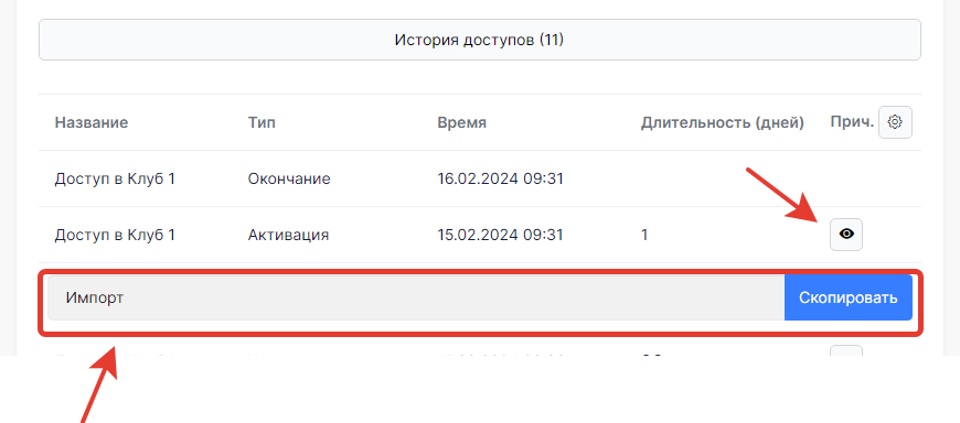 По кнопке в виде глазика, с столбце - Прич., можно определить - каким образом данный доступ был активирован.