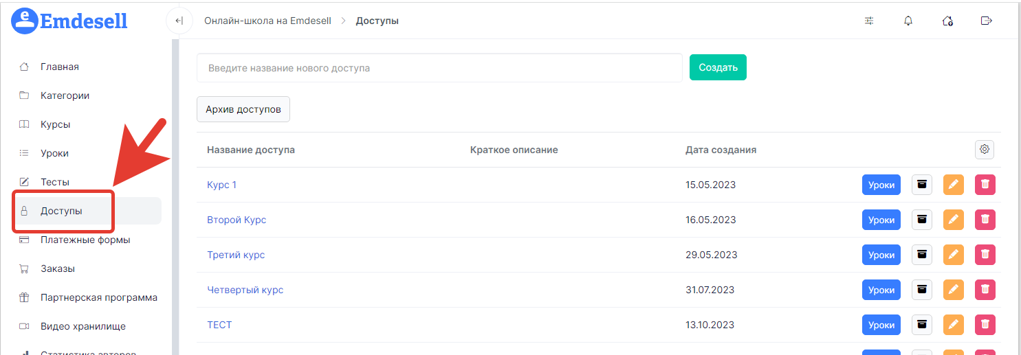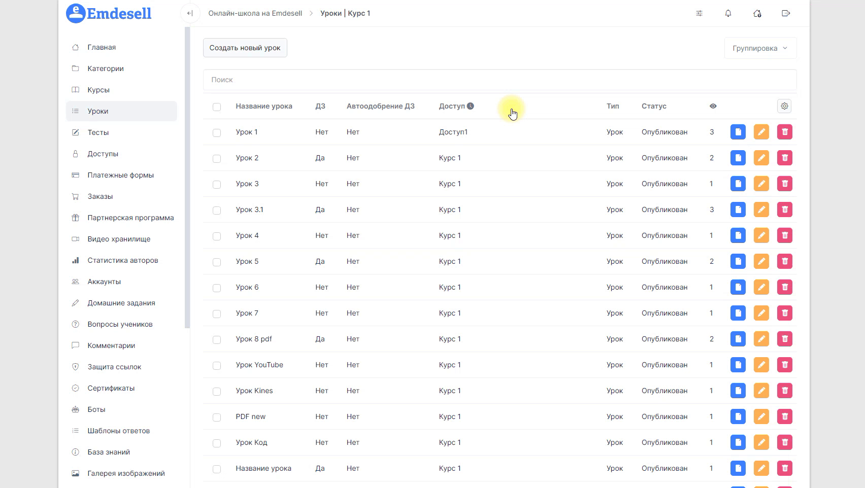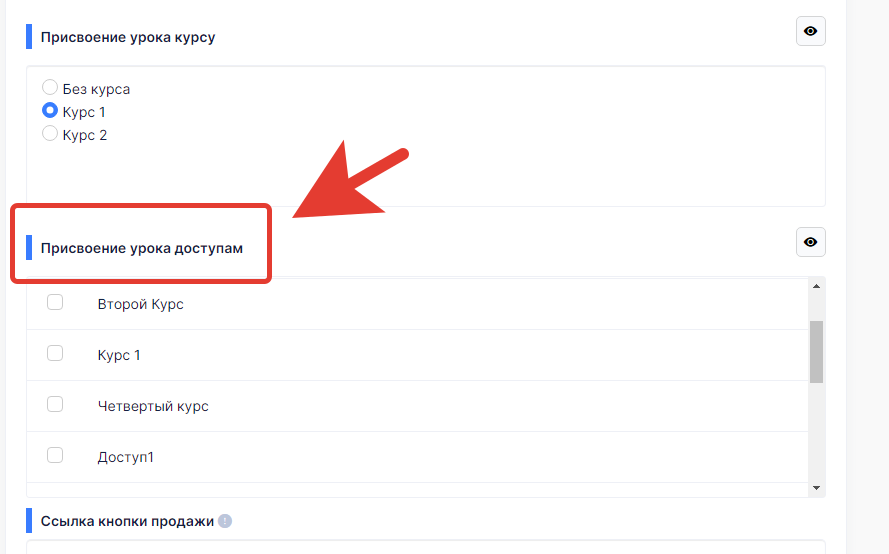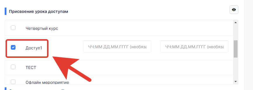 В разделе редактирования урока переходим к настройке опции - Присвоение урока доступам.