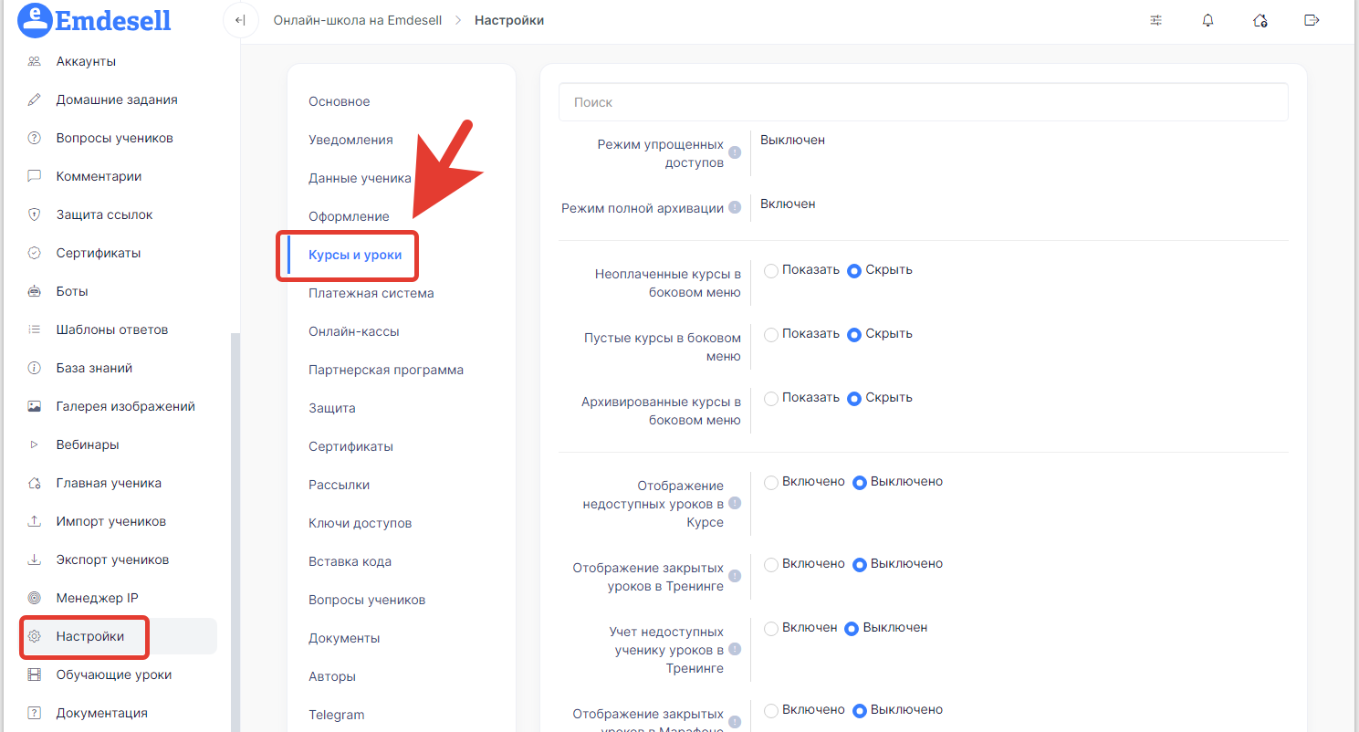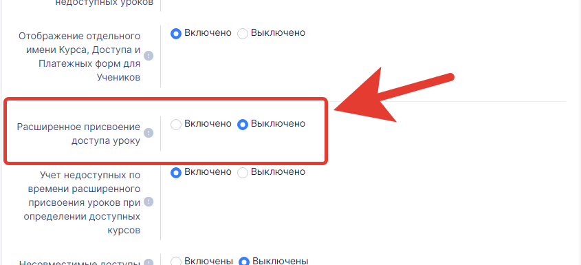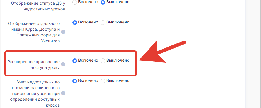 Таким образом, функция — Расширенное присвоение доступа уроку — Включена.