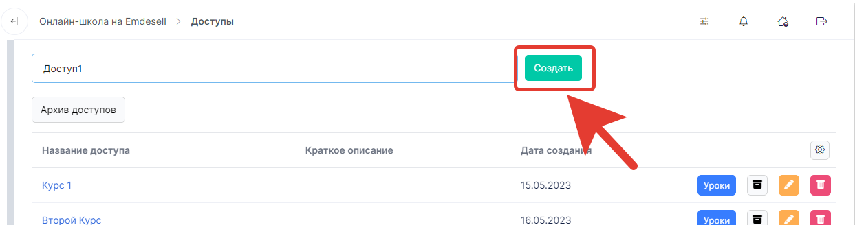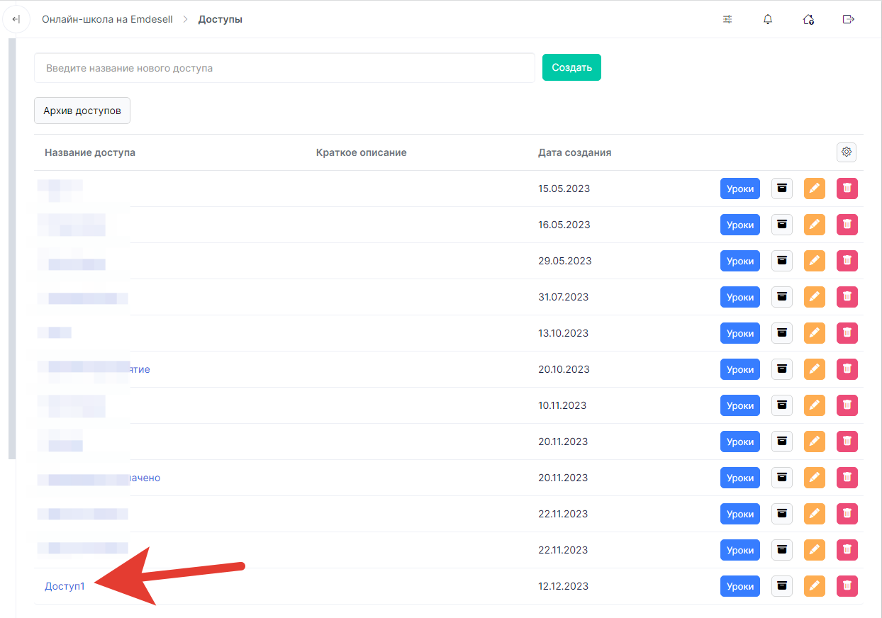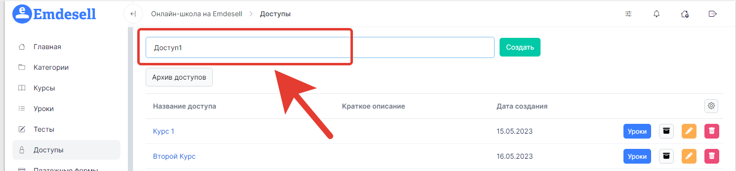 Введем название доступа — Доступ1, в строке ввода — введите название.