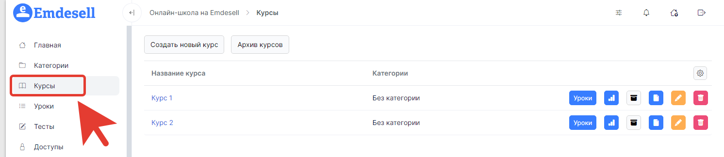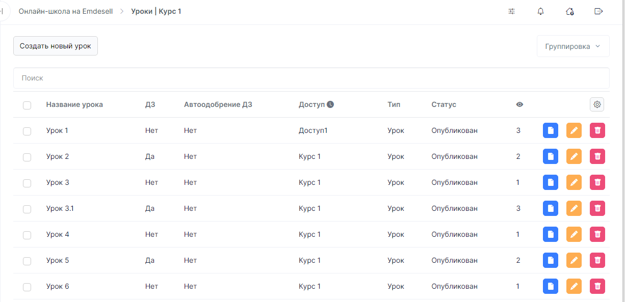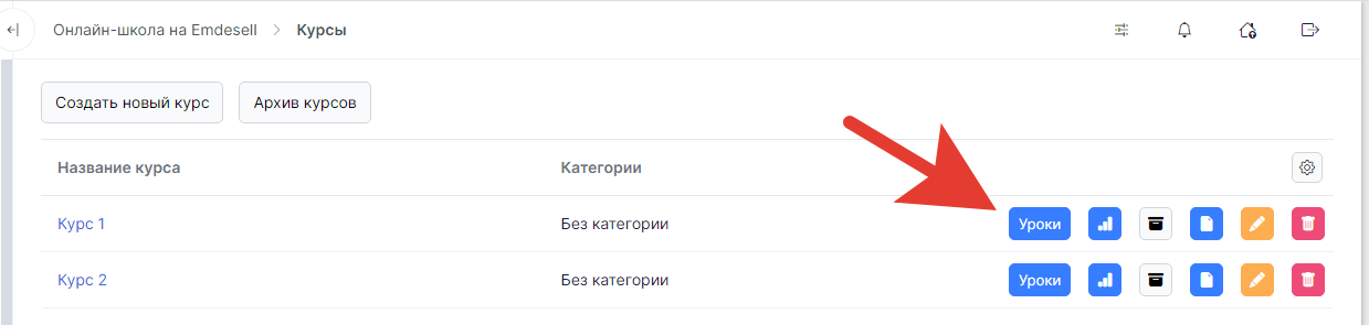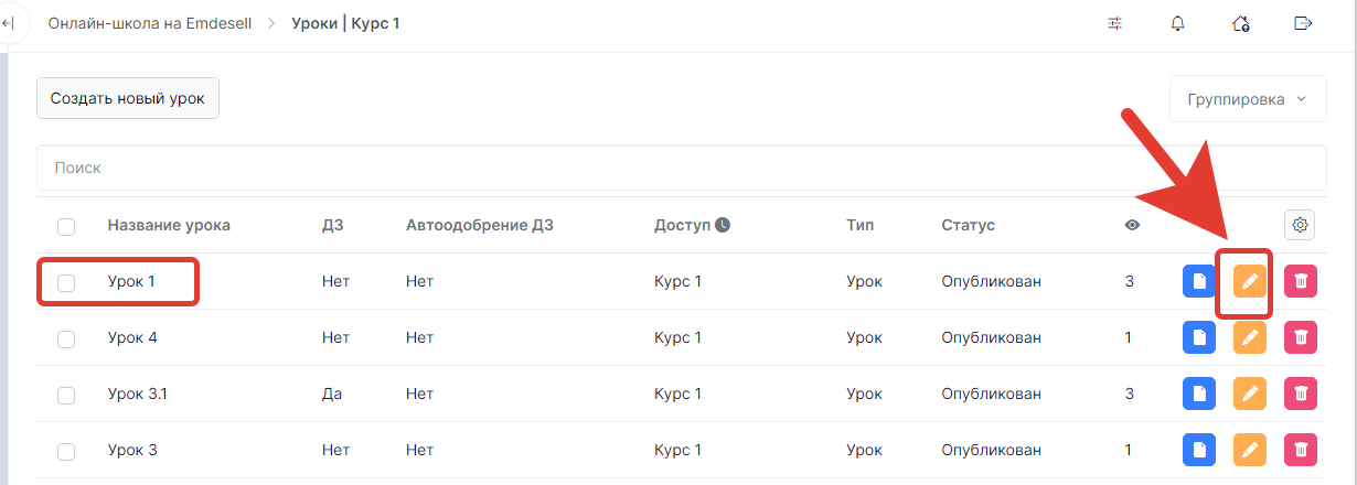 И, перейдем в список уроков Курса 1 по кнопке - Уроки.