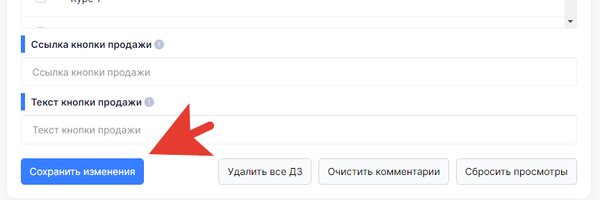 Чтобы сохранить изменения в уроке, нажимаем кнопку - Сохранить изменения.