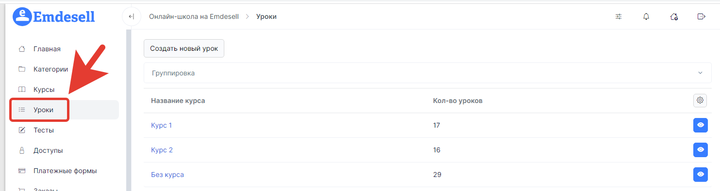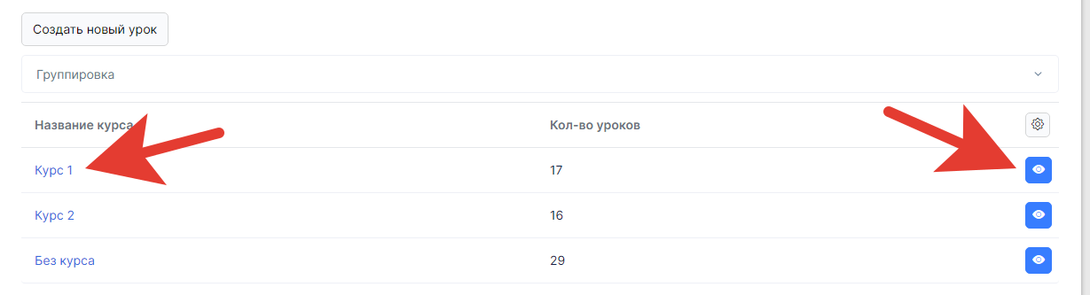 Нажимаем на Курс 1 или на кнопку — глазик, чтобы перейти в список уроков.