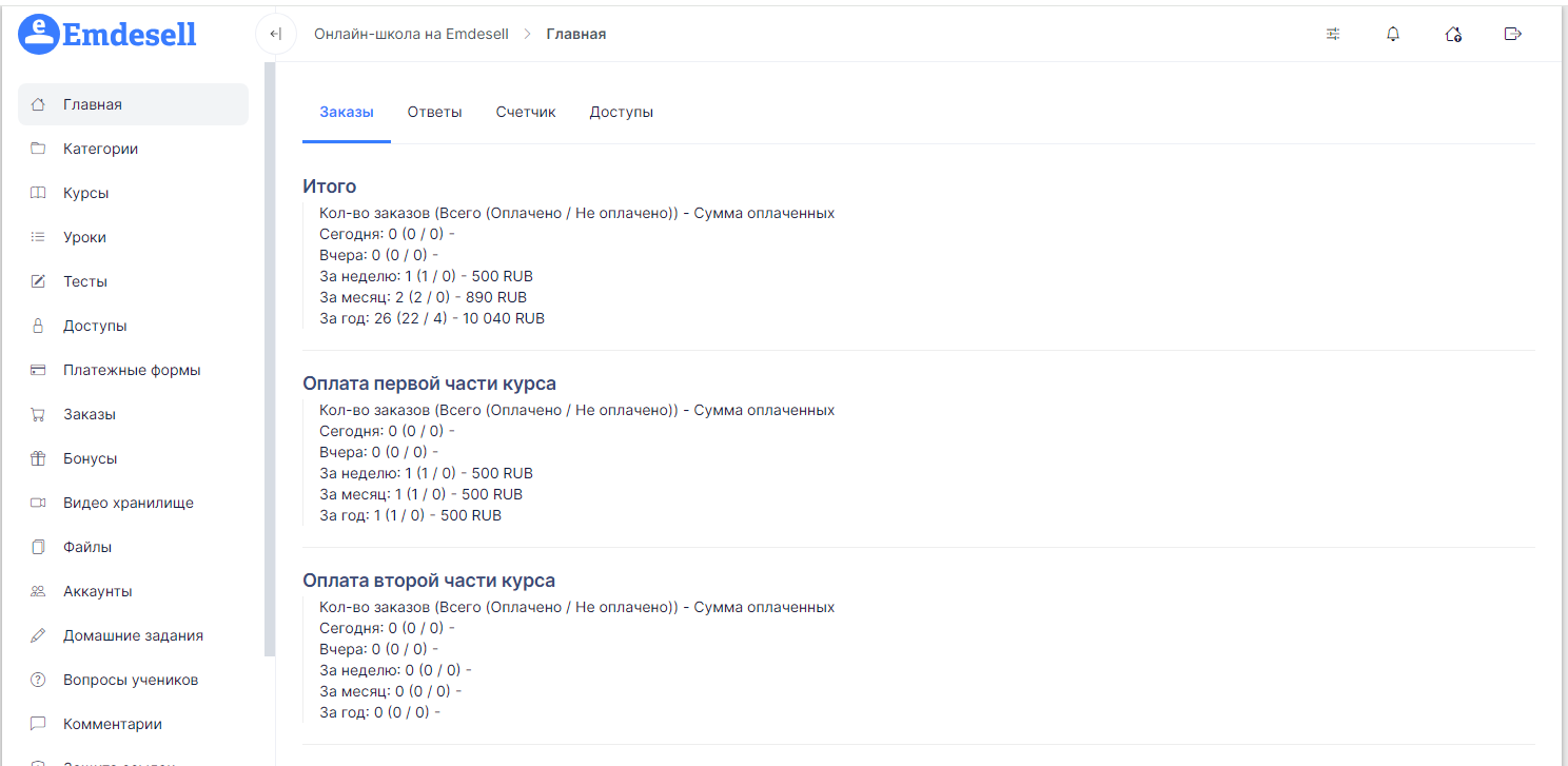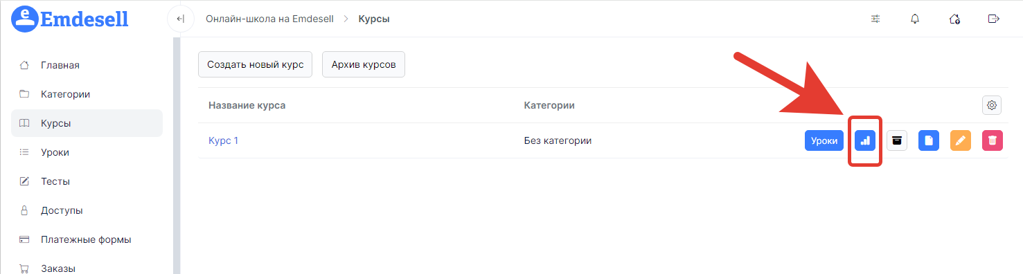 В данном разделе инструкций рассмотрим такой вопрос - как посмотреть общую статистику по тому или иному курсу в школе.