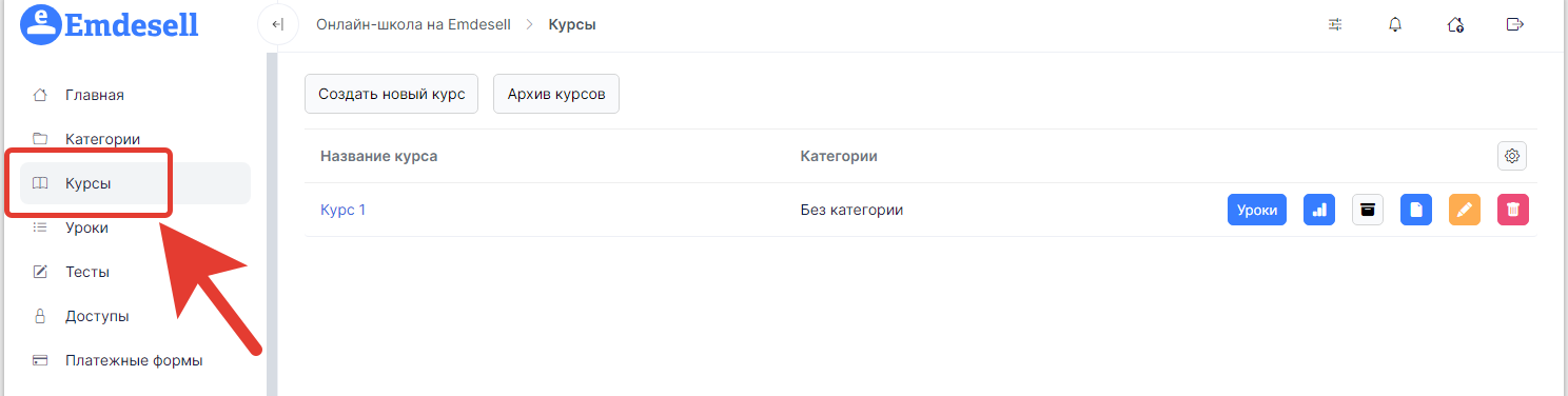 Переходим в раздел меню кабинета школы - Курсы.