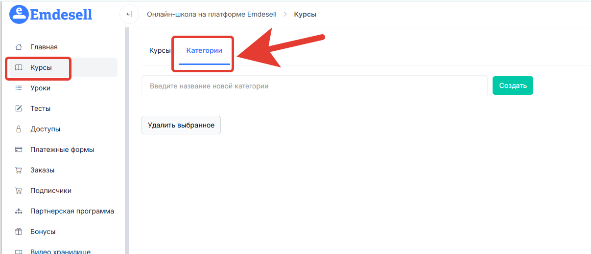 Этот подраздел находится в разделе курсы, в котором можно создать Категории.