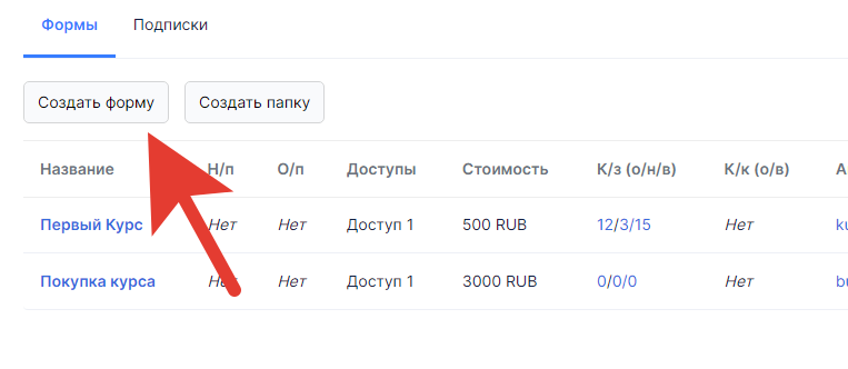 - Переходим в раздел Платежные формы, вкладка - Подписки.