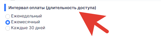 - Далее, опция настройки Интервал оплаты позволяет настроить интервал списания денежных средств по подписке.